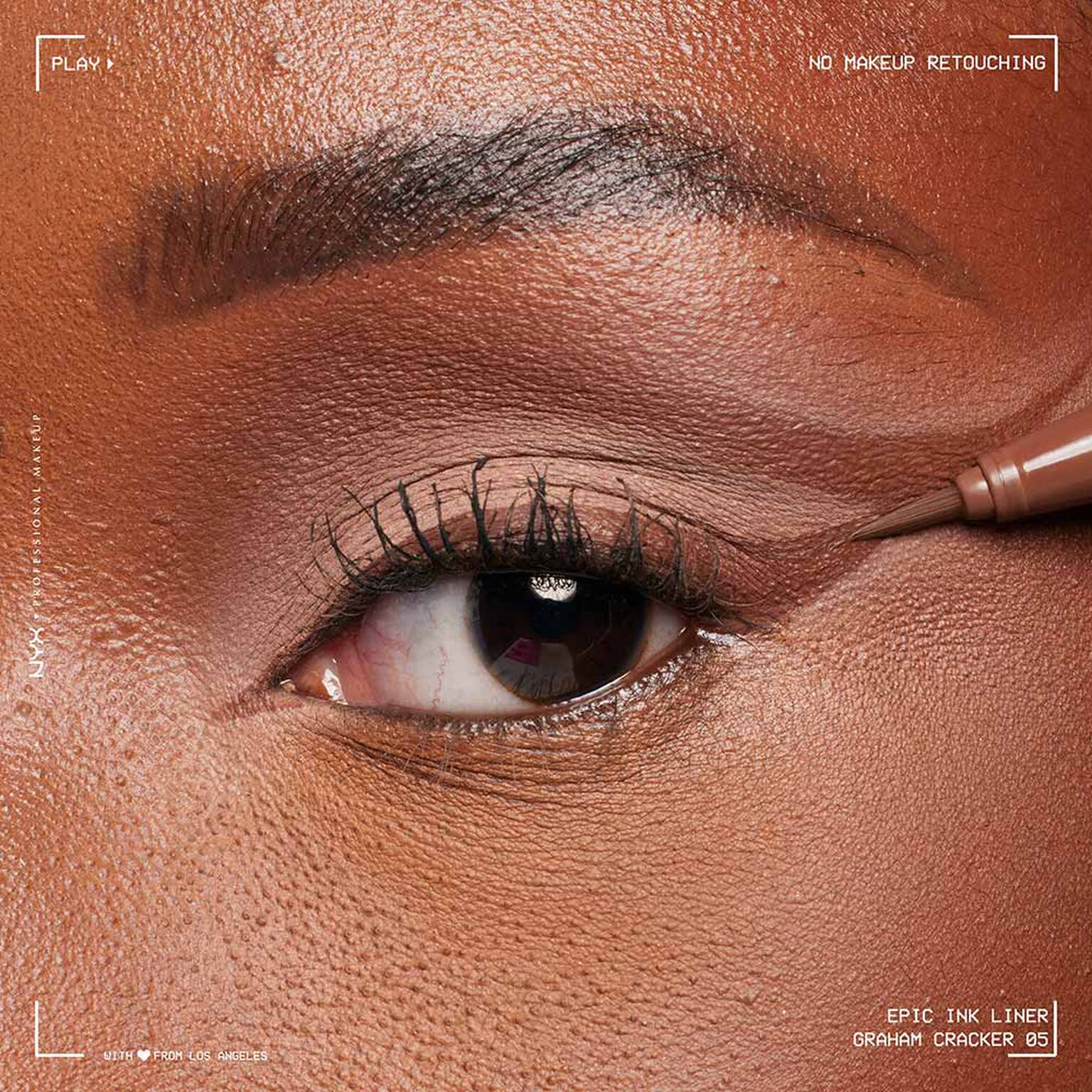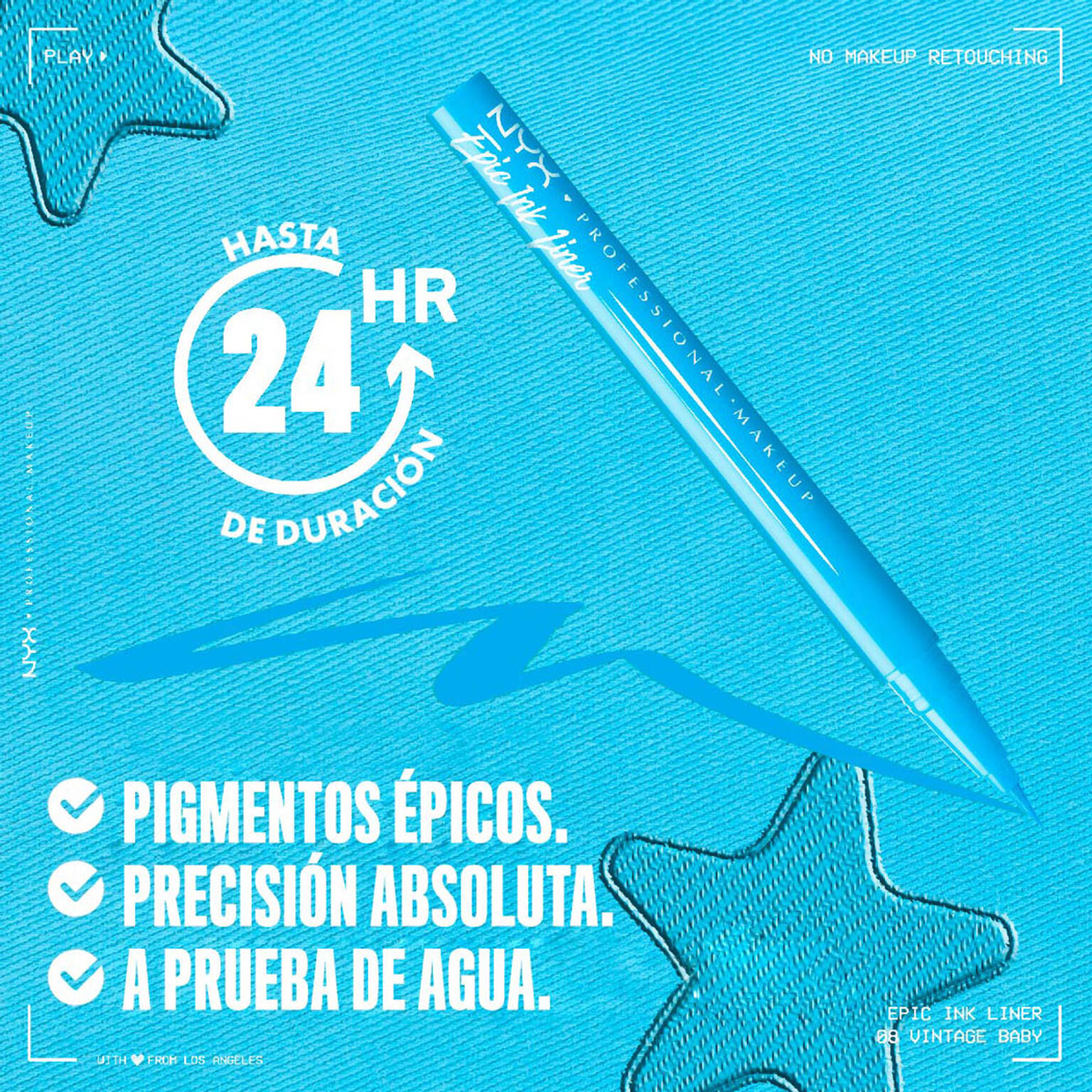 ¡Consigue una mirada épica con este delineador líquido a prueba de agua diseñado para ofrecer precisión épica, duración épica y un arte ilimitado! Epic Ink es nuestro delineador líquido con punta de pincel #1, ideal para trazos ultrafinos y resistentes al agua. Su pigmento intenso de una sola pasada se desliza fácilmente, creando líneas saturadas que duran todo el día. La punta del pincel, delgada y flexible, te permite crear trazos finos o gruesos con total facilidad. Ya sea que prefieras un delineado discreto o vivas para el clásico cat eye, este delineador líquido de larga duración te brinda resultados épicos. Disponible en acabados mate, glitter y metálicos.