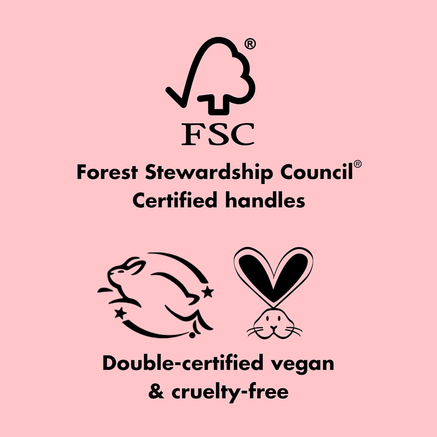 Cepillos especiales: el cepillo pequeño en ángulo crea líneas uniformes, finas y rectas, y el cepillo pequeño de punteado crea capas suaves añadiendo textura para un aspecto natural con aerógrafo. Ambos se pueden utilizar con productos líquidos, en crema o en polvo.
