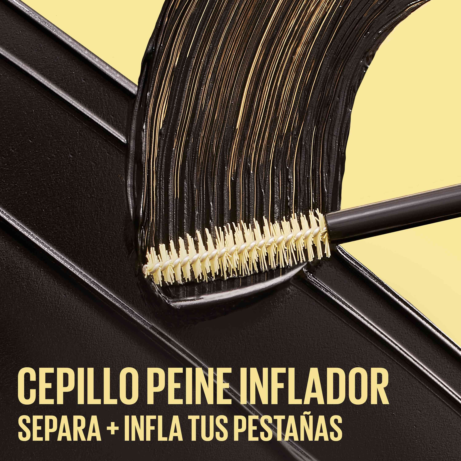 Para obtener mejores resultados, sostén el cepillo peine inflador contra las pestañas y extiéndelo desde la raíz hasta la punta repetidamente hasta lograr el look deseado.