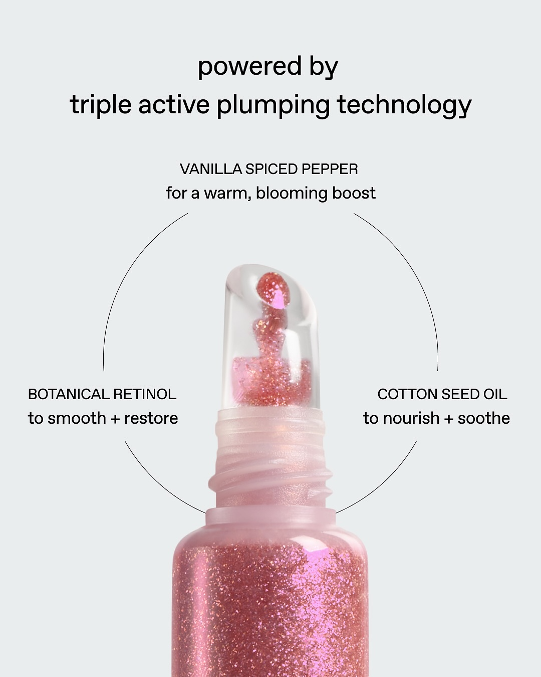Una sola pasada de esta fórmula ultrabrillante proporciona un volumen instantáneo con una calidez radiante que suaviza, hidrata y suaviza los labios. Enriquecido con nuestro complejo triple activo de relleno de aceite de semilla de algodón, retinol botánico y pimienta con especias de vainilla, nutre y revitaliza para unos labios que lucen tan bien como se sienten. Estos tonos duocromáticos iridiscentes brillan, se transforman y reflejan la luz desde cualquier ángulo.
