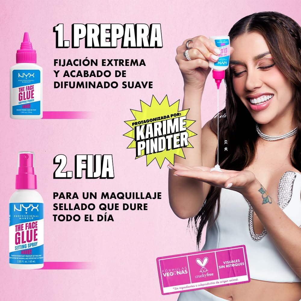 ¡Dale la bienvenida al nuevo Face Glue Setting Spray por Nyx Professional Makeup! Hasta 24 horas de maquillaje a nivel de pegamento sin dejar una sensación pegajosa y sin transferencias. Esta fórmula de spray fijador de larga duración contiene potentes formadores de película para pegar el maquillaje, conocido por sus propiedades de agarre extremo.¡Acabado natural y ligero sin pegajosidad!